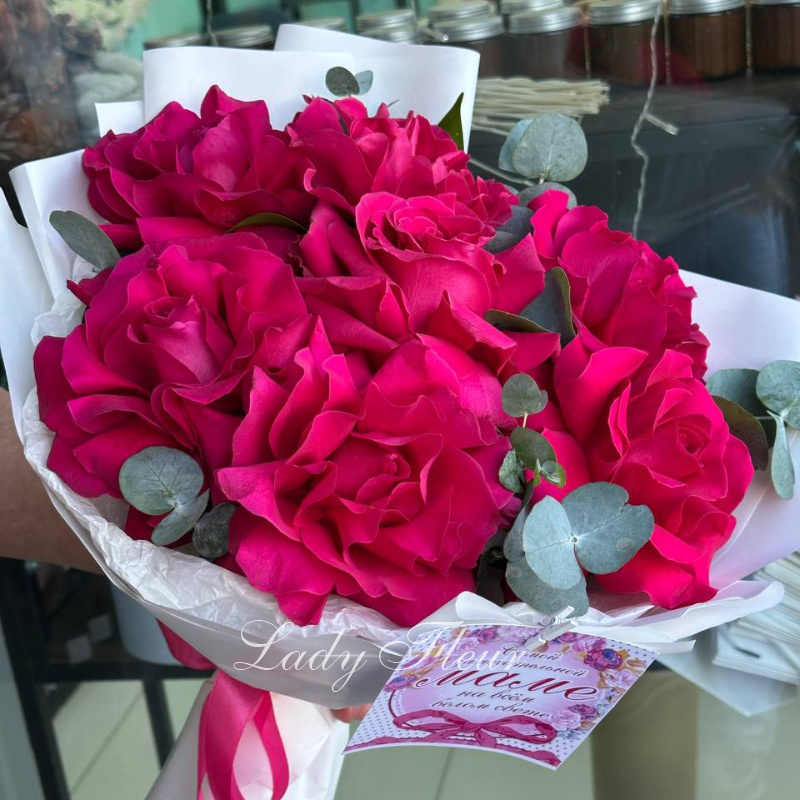 Композиция "фейерверк чувств" полностью соответствует своему названию! Эти розы в букете очень сочно смотрятся, как пионы, которых зимой не найти! Композиция отличная, сервис по доставке кстати тоже. Заказ оформляла по интернету с другого региона, выбор магазина цветов помогли сделалать отзывы других, поэтому и оставляю свою рекомендацию!