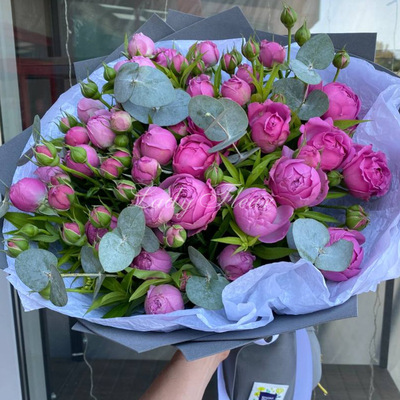 Композиция "фейерверк чувств" полностью соответствует своему названию! Эти розы в букете очень сочно смотрятся, как пионы, которых зимой не найти! Композиция отличная, сервис по доставке кстати тоже. Заказ оформляла по интернету с другого региона, выбор магазина цветов помогли сделалать отзывы других, поэтому и оставляю свою рекомендацию!