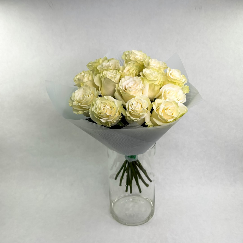 Классический букет из белых роз с лентой