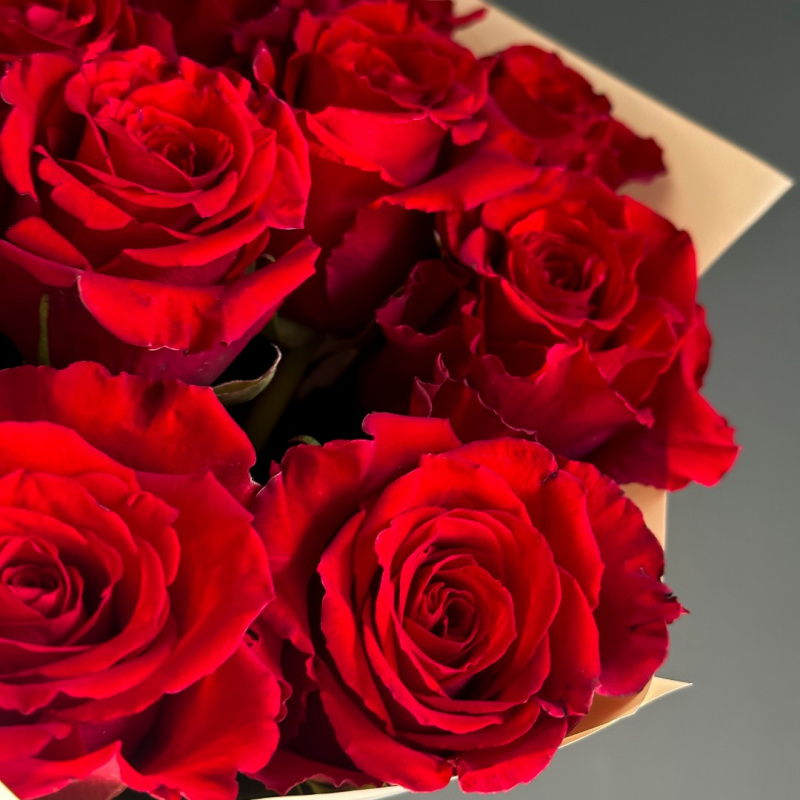 Классический букет из красных роз станет прекрасным подарком на любое торжество